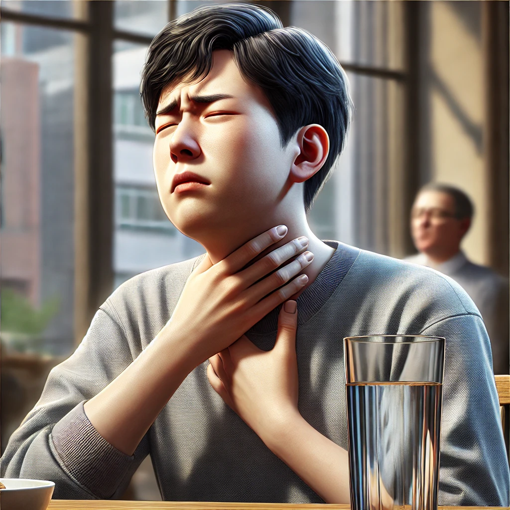 - 삼킬 때 가슴 중앙 부위가 아픈 느낌