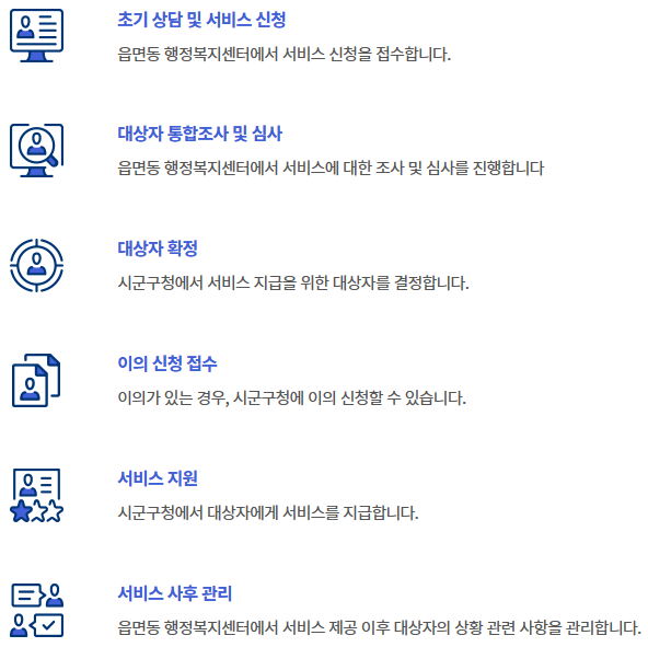 1)해당 읍/면/동 행정복지센터에 직접 방문하거나 복지로 홈페이지, 정부24에서 온라인으로 신청 합니다.
