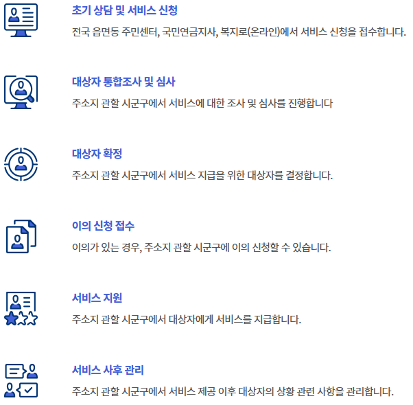 2)복지로(www.bokjiro.go.kr) 서비스 신청을 통한 온라인 신청 이용이 가능합니다.